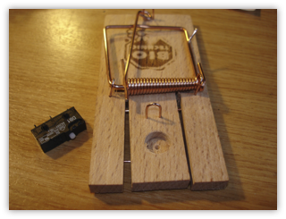 ...besteht aus einer Mausefalle für 0,99 Cent, einem Mikrotaster, einem Knopfzellenhalter und einem Funkmodul für den 802.15.4-Standard (zigbee-konformes Übertragungsprotokoll).