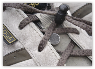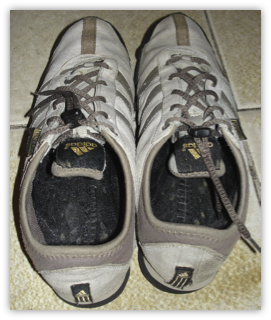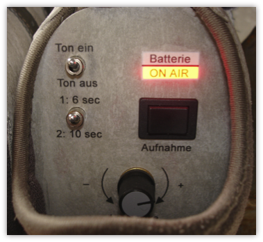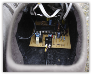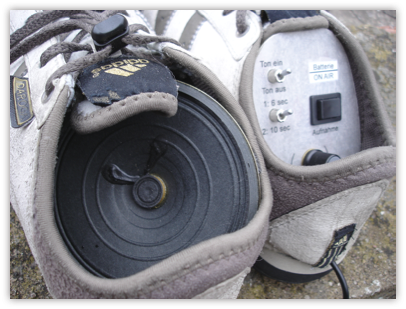 Mikrofon, Grundplatine und Lautsprecher werden in zwei ausgedienten Sportschuhen untergebracht, die per Zweikomponentenkleber seitlich miteinander verklebt werden. Die Schuhe werden „notfalls“ oder „bei Bedarf“ in der Waschmaschine noch ein letztes Mal einer Wellnessbehandlung unterzogen.