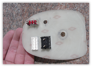 Nun können die Bedienelemente eingesetzt und ggf. verklebt werden. Die Frontplatte kann noch an die Zunge des Schuhs geklebt werden, durch Hochklappen kommt man dann wieder an die Kabel und die Platine.